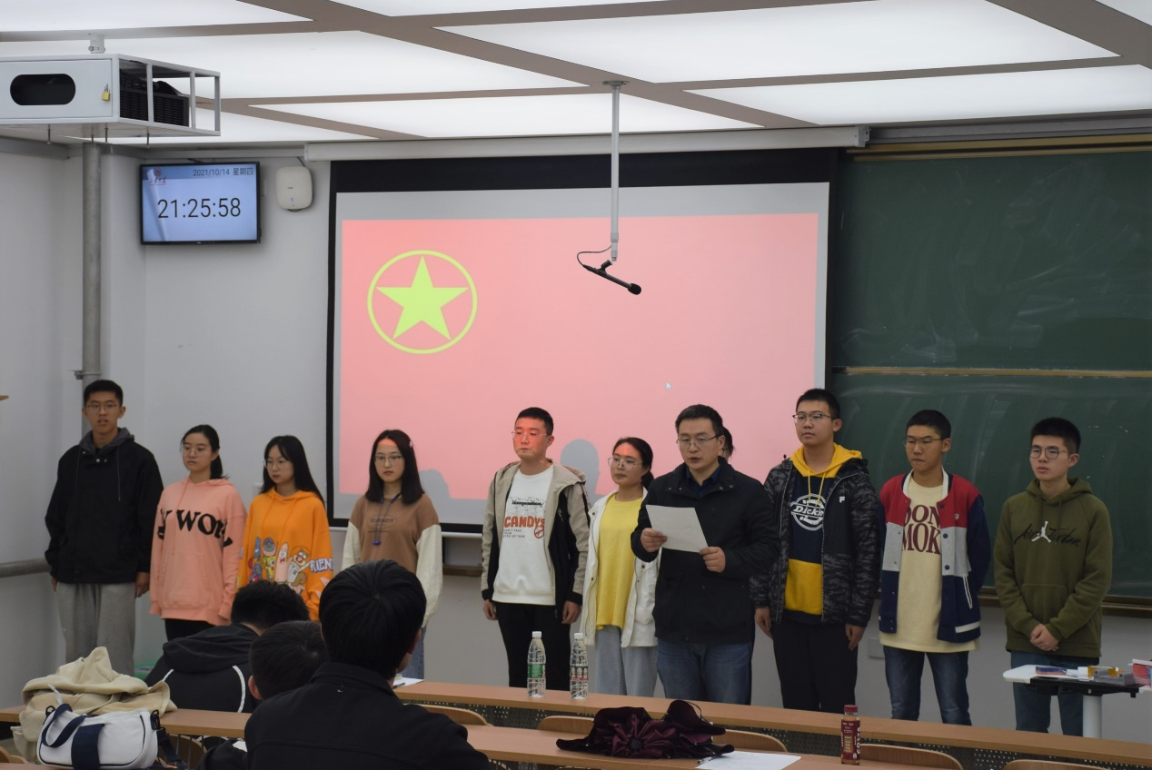 会议上,主持人介绍了入团仪式议程,全体人员肃然起立,唱响国歌。新团员面向团旗庄严宣誓,志愿加入中国共产主义青年团,坚决拥护中国共产党的领导,声音铿锵有力,表达了加入共产主义青年团的坚定决心。