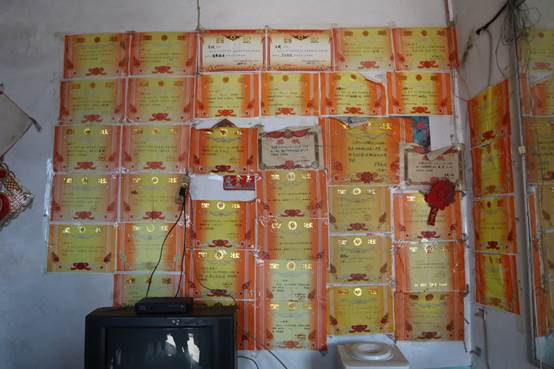 图为贴满奖状的“荣誉墙”