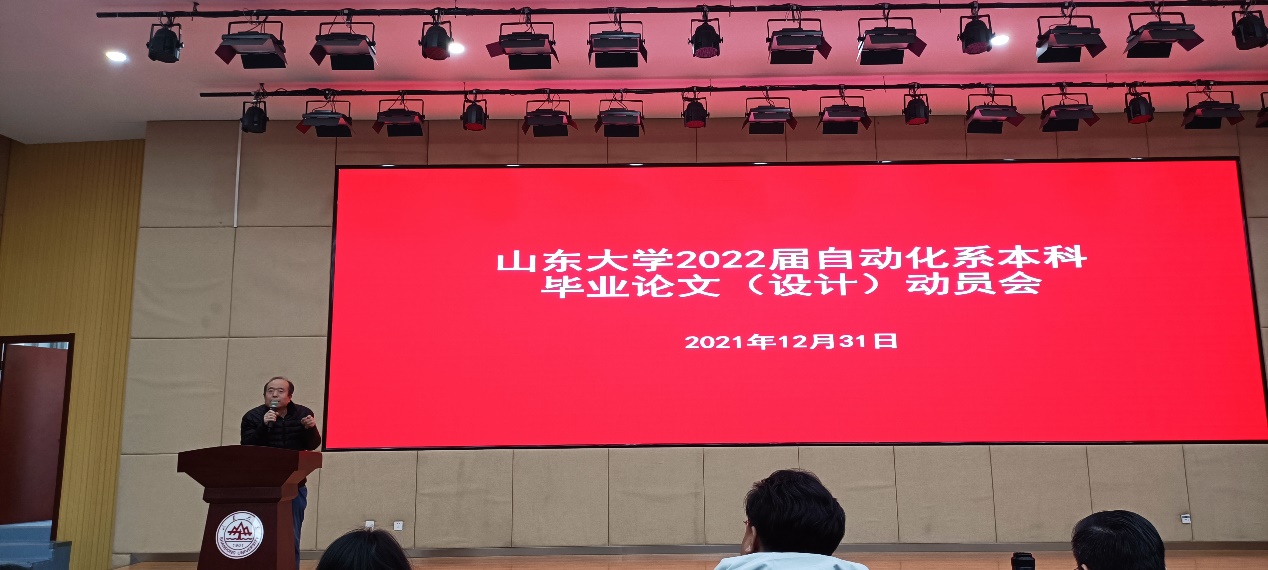 自动化系在兴隆山校区讲学堂101举办了2022届本科毕业论文(设计)动员会。本次动员会由自动化系副主任刘国良主持,教学副院长朱文兴、卓越班班主任李现明和2018级辅导员刘慧慧分别致辞,学生工作副书记吴晓晴和教师代表陈振学、路飞、王平、杨西侠、李腾、刘春生、张关关、张国腾、吴疆等参加了本次会议,2022届自动化专业全体同学参加了本次会议。