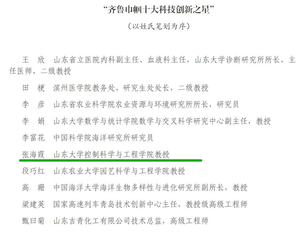 “齐鲁巾帼科技创新之星”评选是由山东省妇联发展部推出,旨在深入学习贯彻习近平总书记关于科技创新的重要论述,大力弘扬新时代科学家精神,鼓舞和激励广大女性科技工作者创新创业创造的热情,以榜样的力量激励青年女性投身科学研究,展现了女性同胞锐意进取、不断奋进的精神面貌,展现出巾帼不让须眉的新时代女性风采。