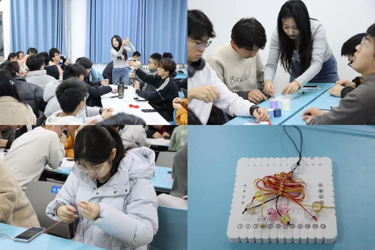 于教学楼C座3110教室成功举办“美育小手工——中国绳结编织”主题活动。活动特别邀请艺术学院2024级研究生艾奕含担任主讲,为现场参与学生带来专业细致的绳结编织指导。