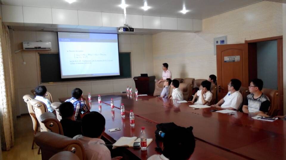 金含清副教授首先介绍了时间一致性LQ问题已有结果的不合理性,然后引出时间不一致性LQ问题,并阐明这类问题的研究难点,最后运用待定系数法和倒向随机系统理论巧妙证明了时间不一致性LQ问题解的存在惟一性。倪元华博士分别从有限时间定号、无限时间定号以及有限时间不定号三个方面介绍了平均场线性二次最优控制问题,详述了解的存在惟一性、稳定性以及开环最优控制等结果。两位专家还就师生感兴趣的问题作了热情、耐心的解答。报告会内容丰富,重点突出,引人入胜。报告会在热烈愉快的氛围中圆满结束。