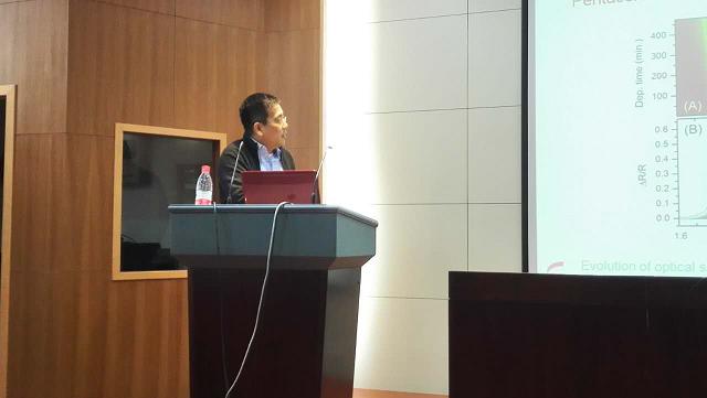 孙立东博士首先从微米纳米测试技术谈起,综述了扫描探针显微、差分反射光谱和电子束测量等技术在微纳结构制造与测试研究中的前沿应用,然后详细介绍了约翰开普勒林茨大学实验物理研究所在有机分子自组装及在线检测方面的研究工作。有机/无机界面的形成机制是有机半导体材料和器件研究中的基础性关键科学问题,报告围绕如何对表面有机纳米结构的形成过程进行在线的精确检测问题,详细阐述了反射光谱、荧光光谱、扫描探针显微等多种测试技术相结合的研究方法和相关研究成果,报告清晰地展现了在开展具体研究工作中发现问题、思考问题、解决问题的过程,对研究生开展课题研究具有很好的指导和借鉴价值。报告之后,孙立东博士还与在座师生针对报告中的相关问题展开了讨论。