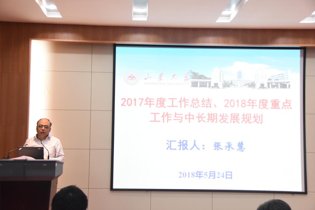 张承慧总结了2017年学院在学科建设、本科教育教学、组织科研、人才队伍建设、公房调整统一布局五个方面取得新成绩。对2018年度重点工作和学院中长期发展规划进行部署。2018年工作遵循党建引领,做好顶层规划,推进综合改革,创建一流。重点是科学谋划和积极推动控制学科一流学科建设;提高服务地方能力;健全学院人才和岗位多元一体评价体系;推进教育部重点实验室和国家平台申报工作;抓住“新工科”机遇,建设“人工智能与机器人”专业,建立健全本科生“教学实验-科技创新创业-毕业 设计(综合训练)”一体化实践教育教学体系。最后明确了学院中长期发展规划目标,以党的十九大精神为引领,推行学院事业综合改革,在平台建设、科学研究、队伍建设、专业建设实现新突破,创建一流学科。
