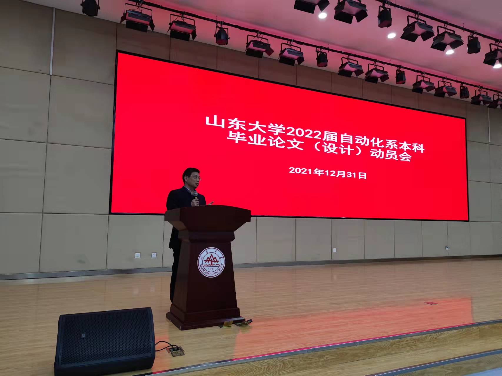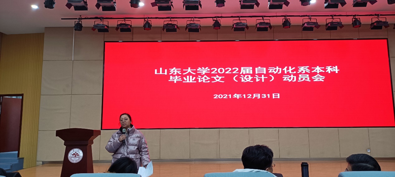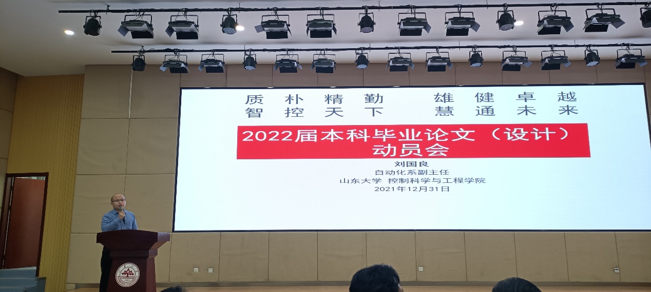 自动化系在兴隆山校区讲学堂101举办了2022届本科毕业论文(设计)动员会。本次动员会由自动化系副主任刘国良主持,教学副院长朱文兴、卓越班班主任李现明和2018级辅导员刘慧慧分别致辞,学生工作副书记吴晓晴和教师代表陈振学、路飞、王平、杨西侠、李腾、刘春生、张关关、张国腾、吴疆等参加了本次会议,2022届自动化专业全体同学参加了本次会议。