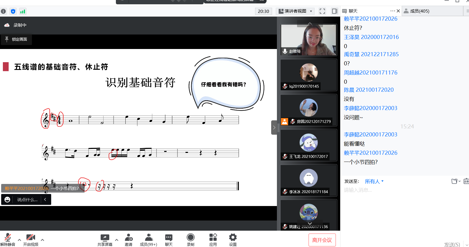 美育助理、艺术学院研究生赵雅琦于线上开展第六期“乐动心弦”美育大讲堂,本次讲座通过具象的视听语言和通俗的表达方式,在与同学们的热情互动中讲授了如何正确识别与使用音乐符号以及五线谱的识谱方法等丰富的基础乐理知识,培养了学生感受美的能力,激发了学生欣赏美的热情,全面提升了学生的美育素养和艺术欣赏能力,讲座参与人数近500人。