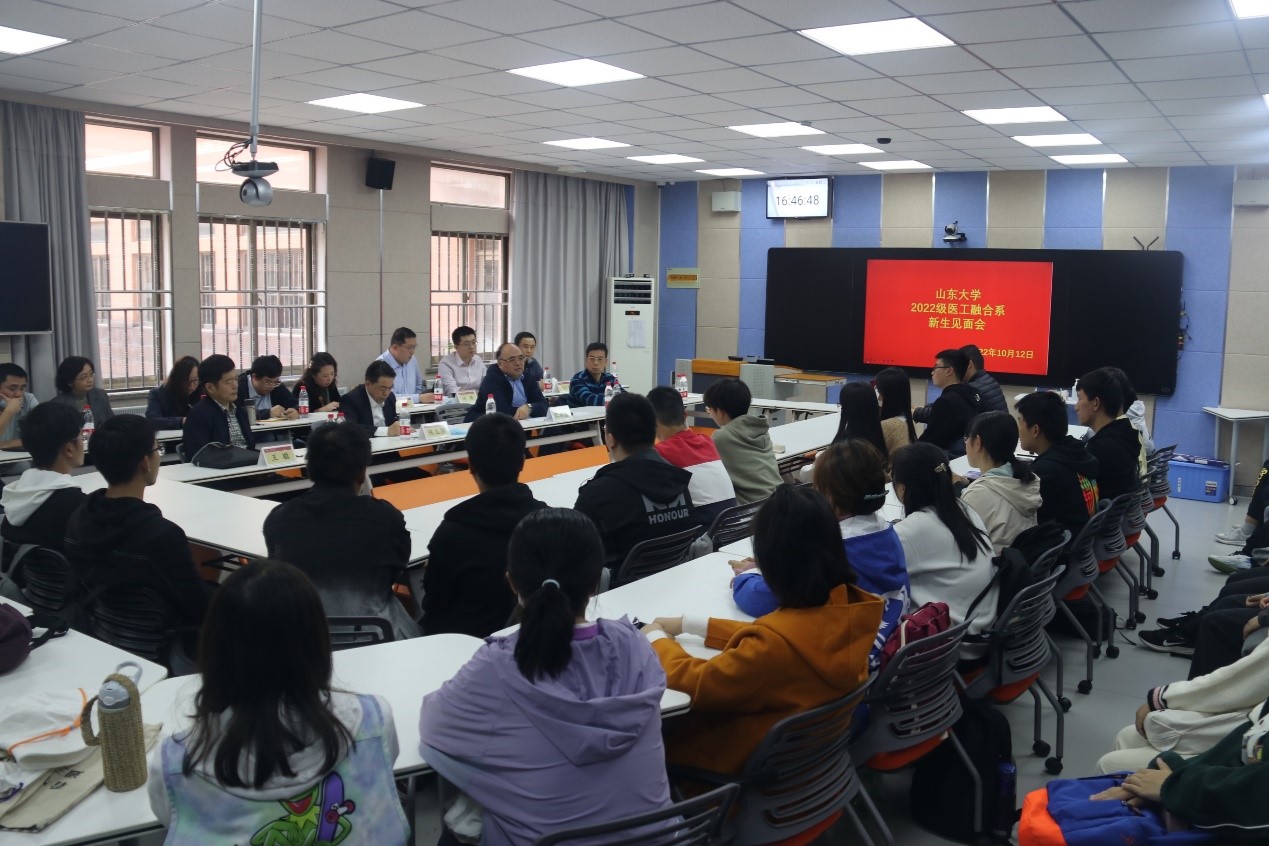 医工融合系骨干教师、齐鲁医院医生代表以及2022级医工融合系全体本科新生参加见面会。医工融合系党支部书记李可主持会议。