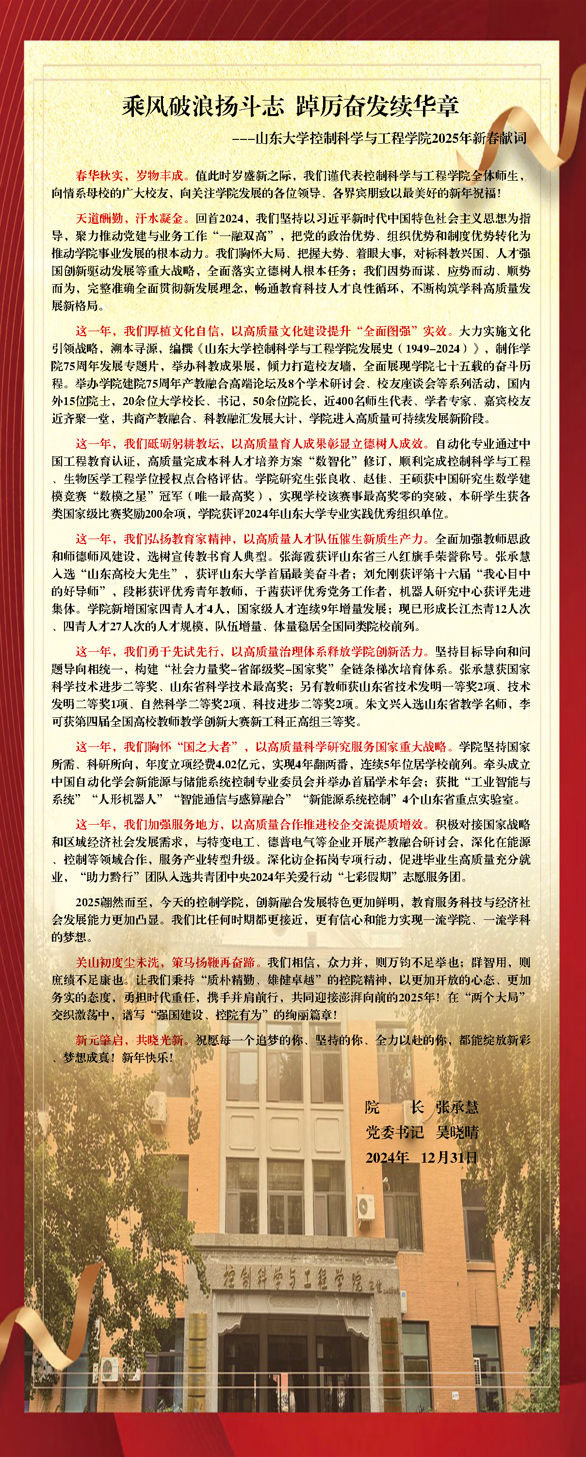 冬至阳生,岁回律转。在这辞旧迎新的美好时刻,自拍偷拍 全体师生,向情系母校的广大校友,向关注学院发展的各位领导、各界宾朋致以最美好的新年祝福!